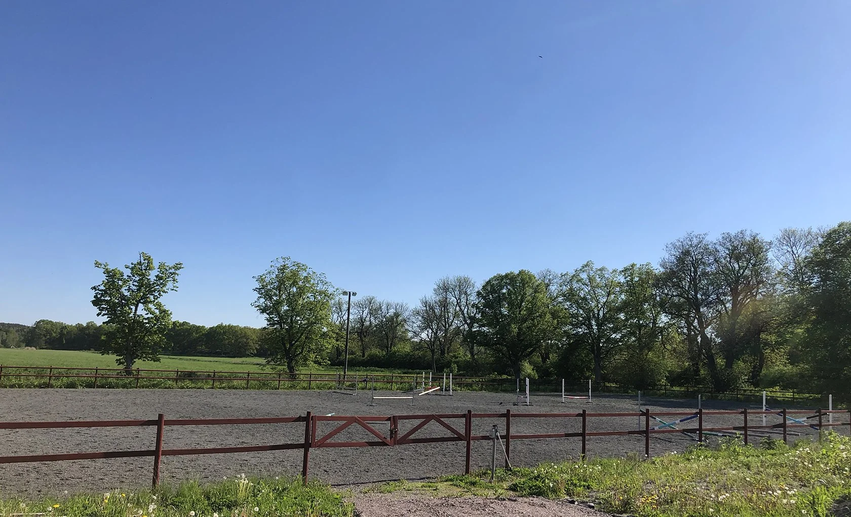 Intill Smedjan ligger den stora ridbanan. Den går att hyra in sig på när du vill. En bokningsida kommer att finnas på Facebook men under tiden går det bra att skicka ett sms eller ringa se nedan. 50 kr per häst per timma.